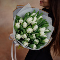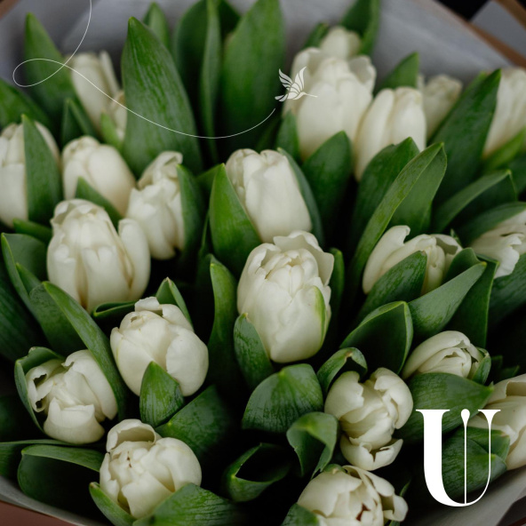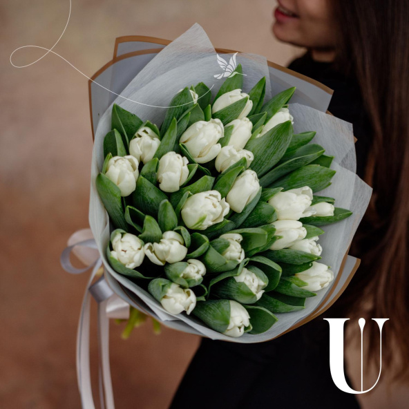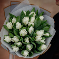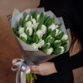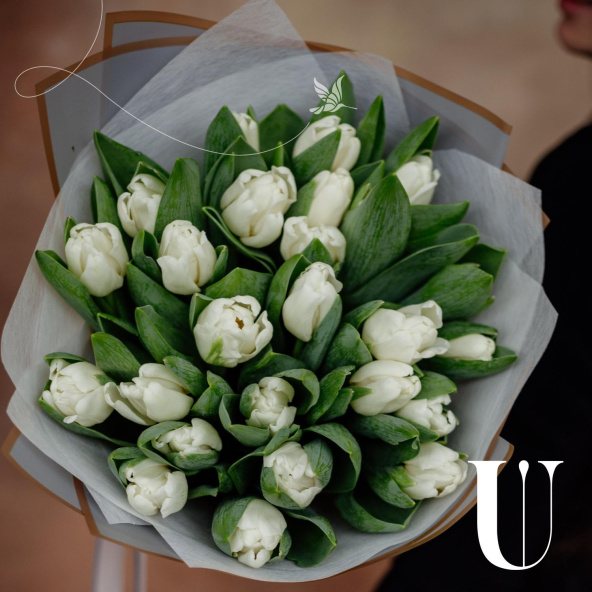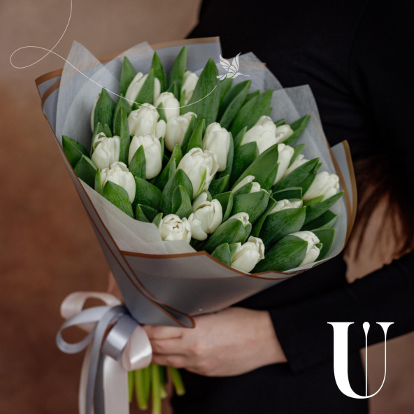 Букет из 15 белых тюльпанов в дизайнерской упаковке