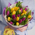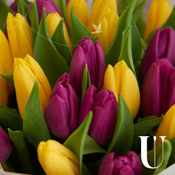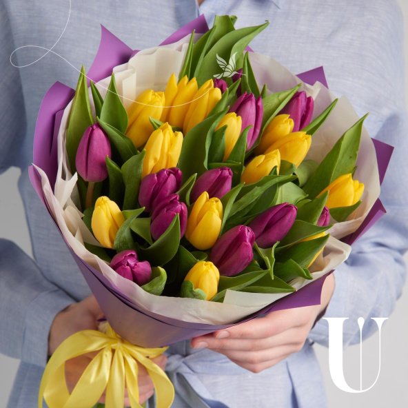 Тюльпаны желтые и фиолетовые - 25 шт