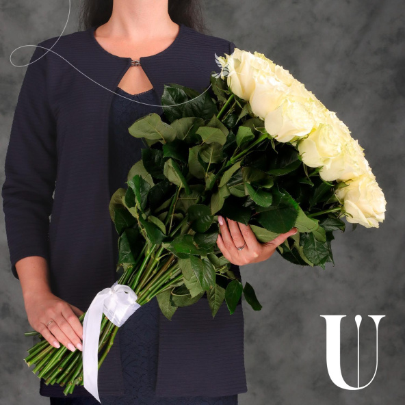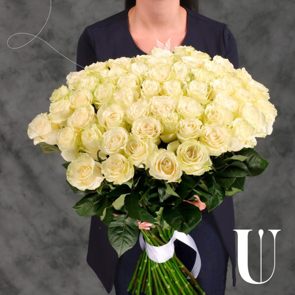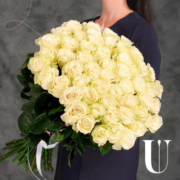 Роза Мондиаль, Эквадор, белая, 70 см. - 51 шт