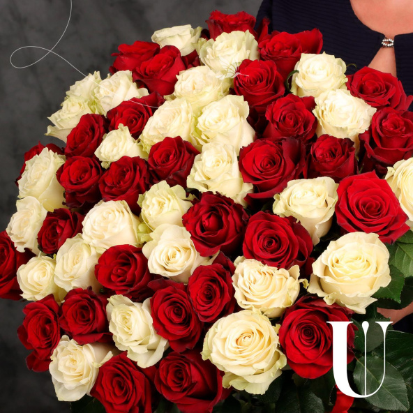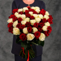 Монобукет из 101 розы микс в дизайнерской упаковке