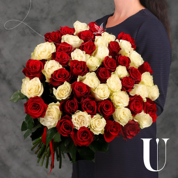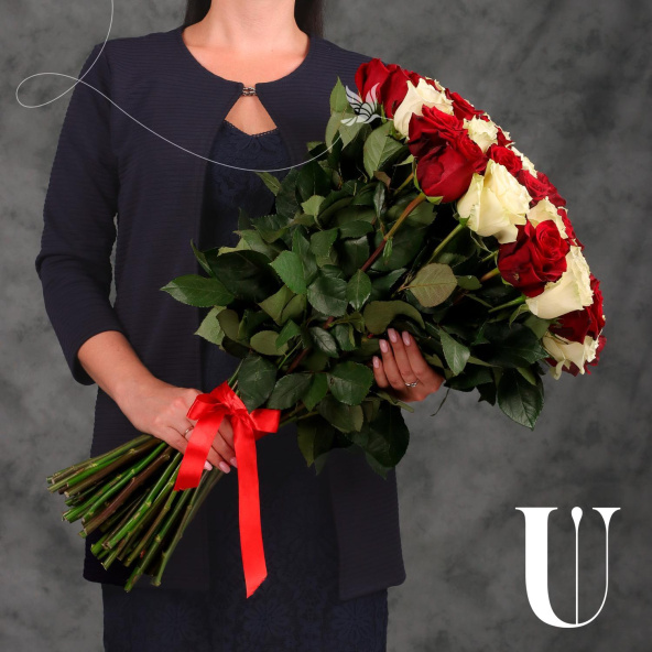 Роскошный букет из 51 длинной, элитной Эквадорской розы