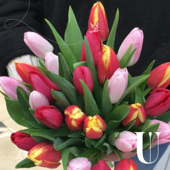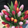 Букет из 11 альстромерий микс с зеленью в упаковке