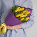 Монобукет из 7 фиолетовых орхидей в упаковке