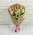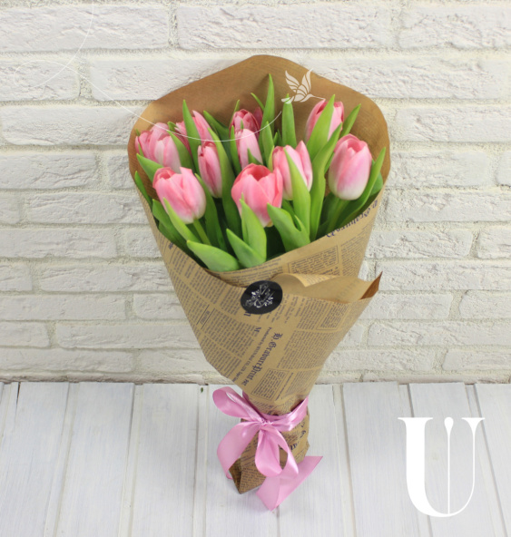Букет из 11 розовых кустовых роз в дизайнерской бумаге