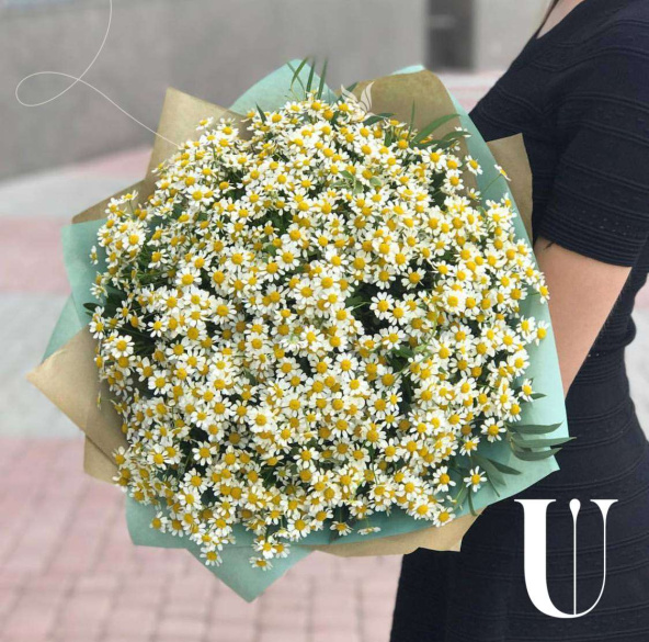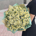 Огромный букет из кустовых хризантем в дизайнерской упаковке