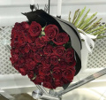 Монобукет из 25 красных роз Ред Наоми в черной упаковке