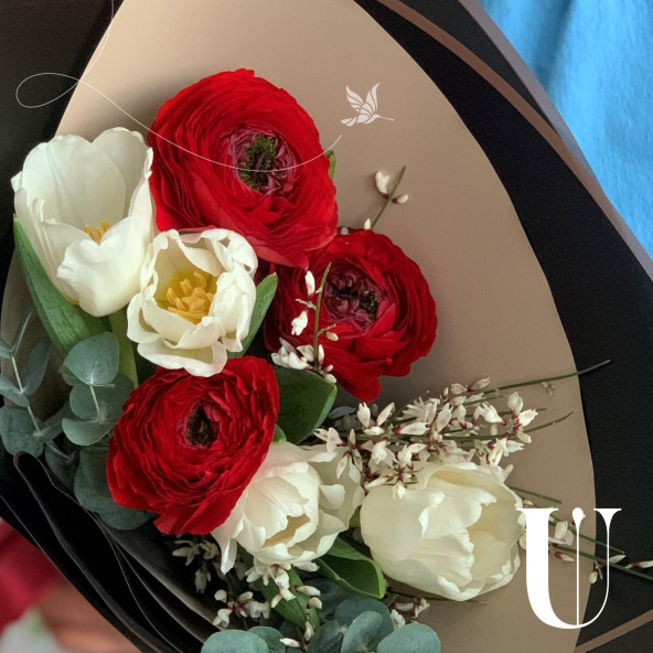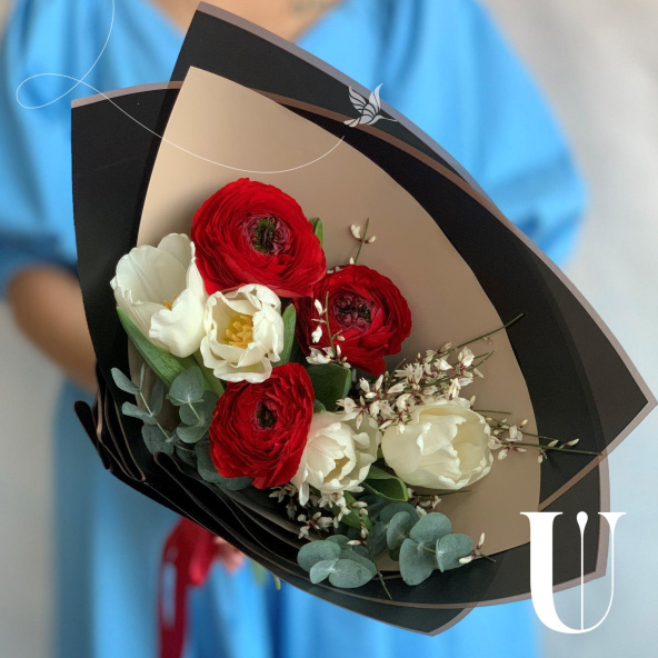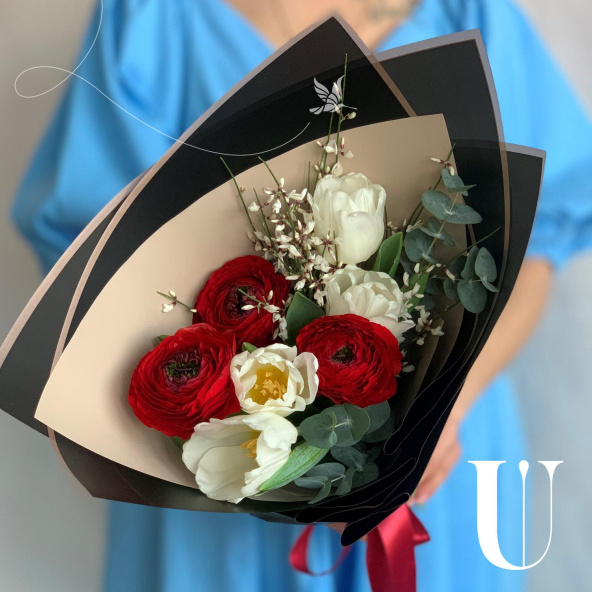 Роскошный, страстный и элегантный букет из красных французских роз сорта Нина