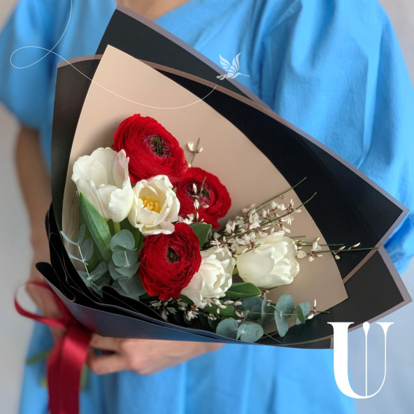Нежнейший ароматный букет из 5 белых лилий в лаконичной белой упаковке