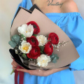 Букет из роз сорта Эксплорер 60 см в чёрной упаковке фоамиран