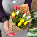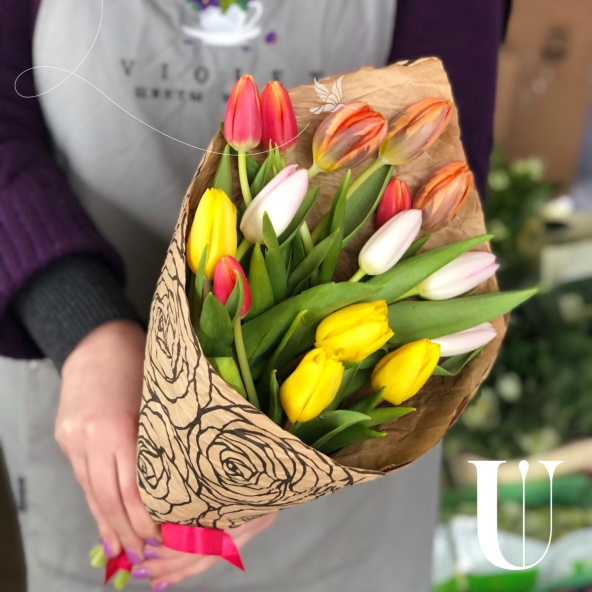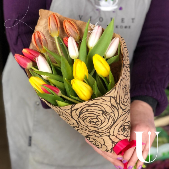 Монобукет из 19 тюльпанов микс в упаковке
