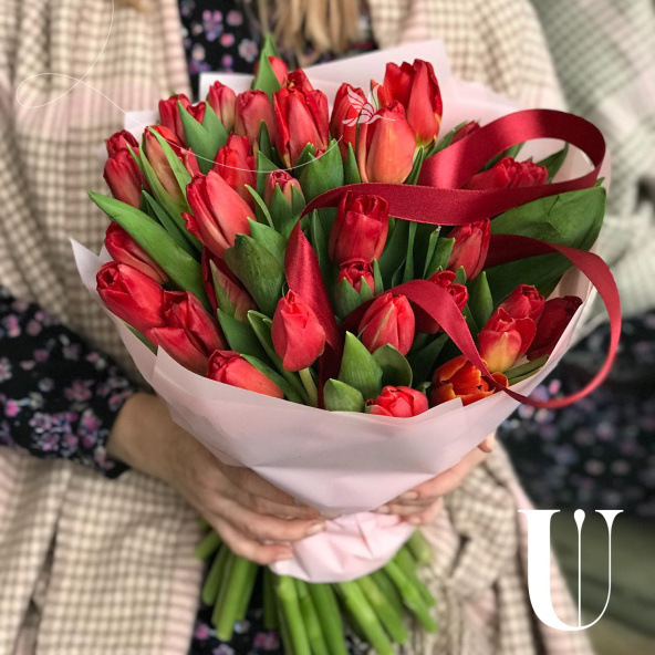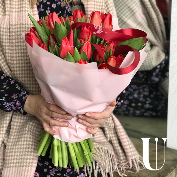 Монобукет из 19 больших красных роз сорта Ред Наоми