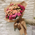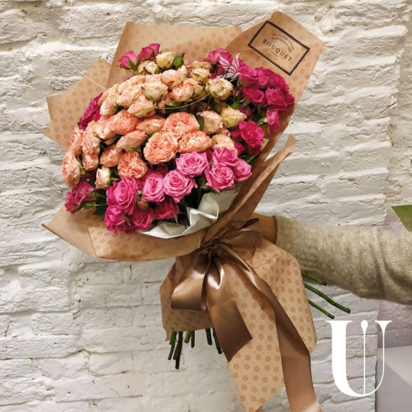 39 нежно и ярко розовых кустовых розочек в крафте