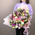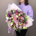 Букет из кустовых хризантем микс в дизайнерской упаковке