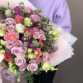 Букет из кустовых роз Лидия и роз Аваланж в дизайнерской упаковке