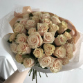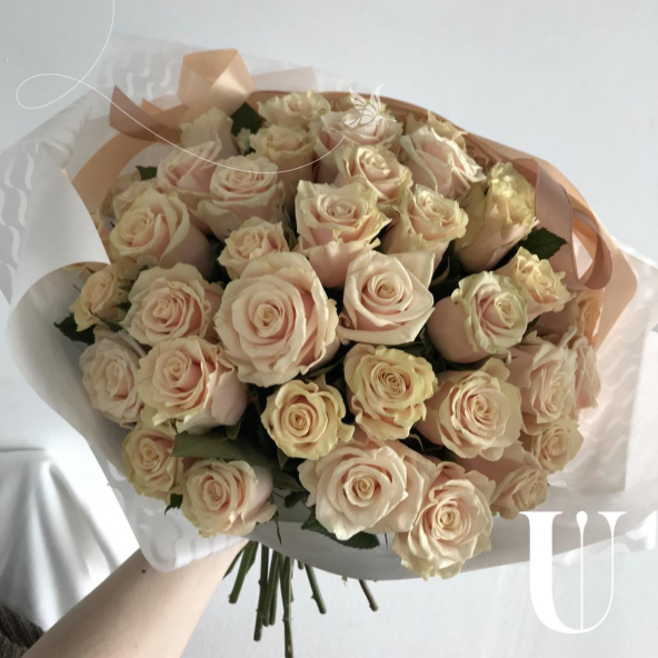 - Монобукет из 39 кремовых роз Талея. Букет упакован в крафт бумагу и перевязан атласными лентами. По вашему желанию мы можем изменить упаковку