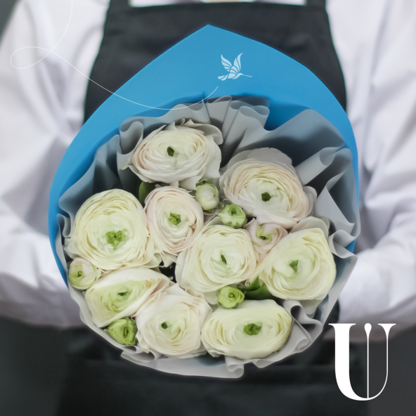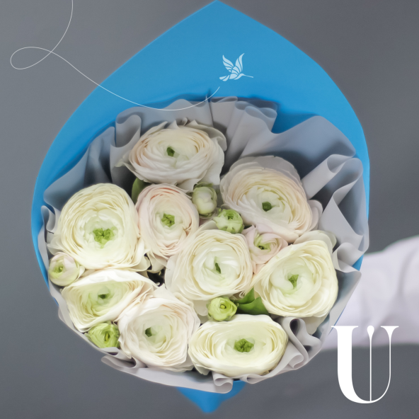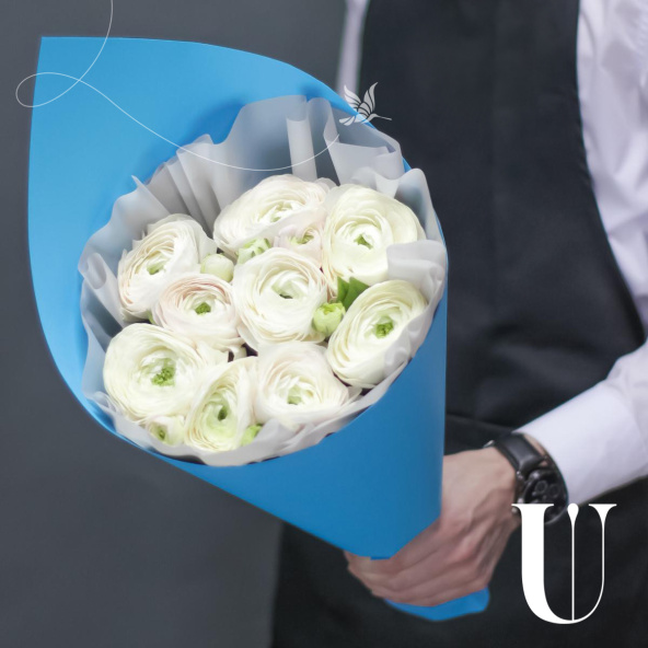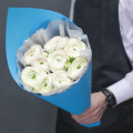 Упаковка:дизайнерская бумага голубая, дизайнерская пленка голубо-серая, розовая лента.