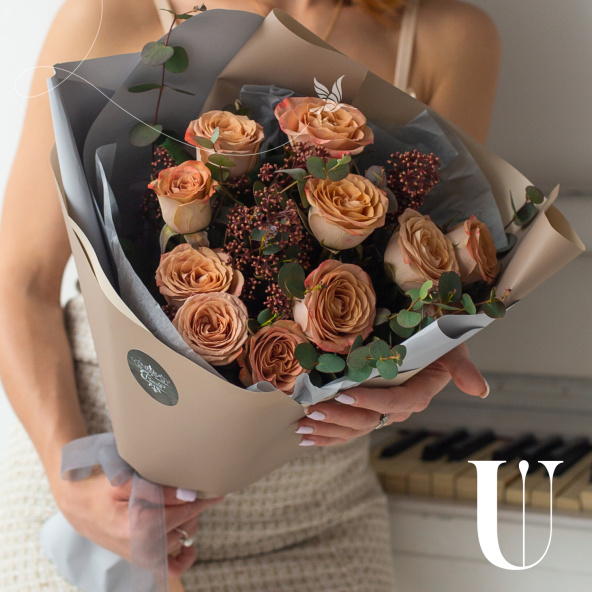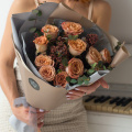 Монобукет из кустовых роз в рыжей гамме