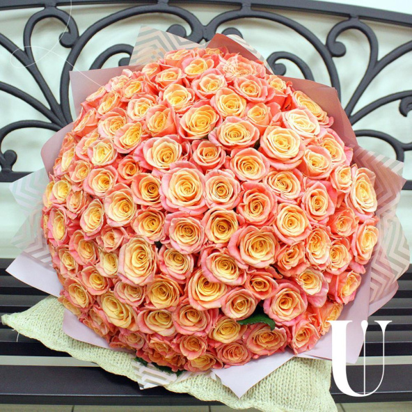 Большой букет из 101 розовой розы сорта Аква в упаковке