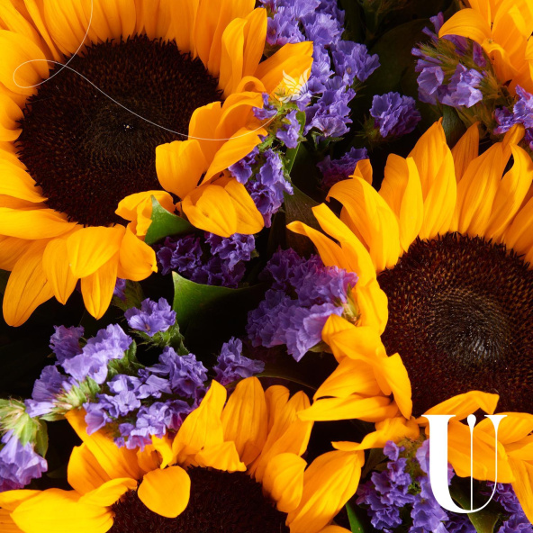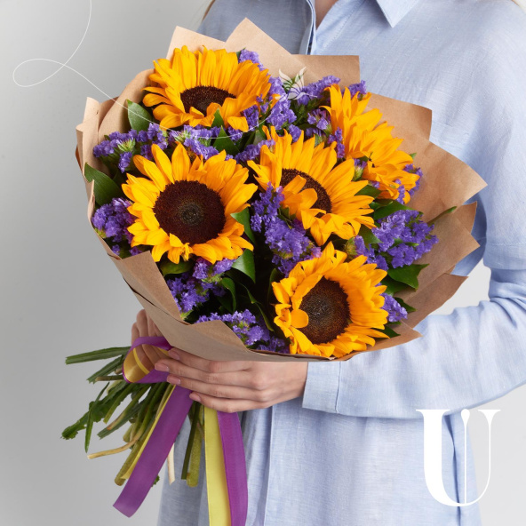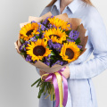 Монокомпозиция из кустовых роз в дизайнерской упаковке