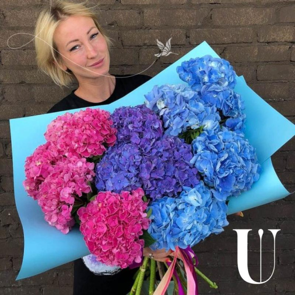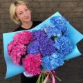 Состав: гортензия малиновая - 5шт, гортензия синяя - 5шт, гортензия фиолетовая - 3