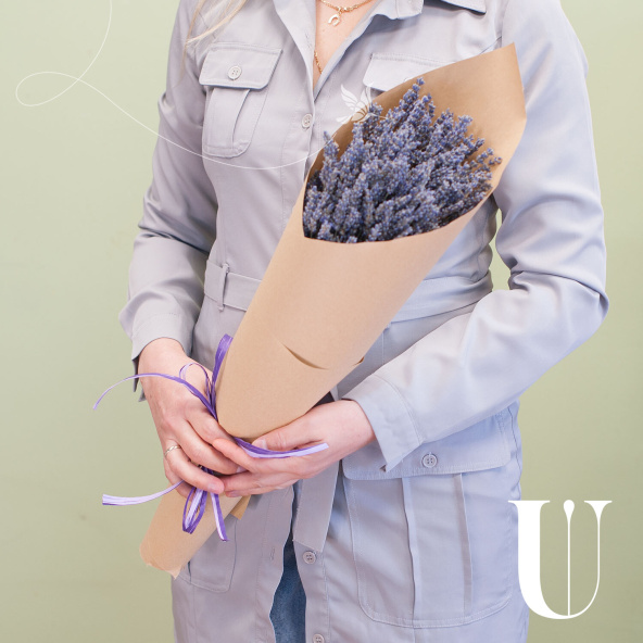 Букет фиолетовой гортензии в фиолетовой упаковке