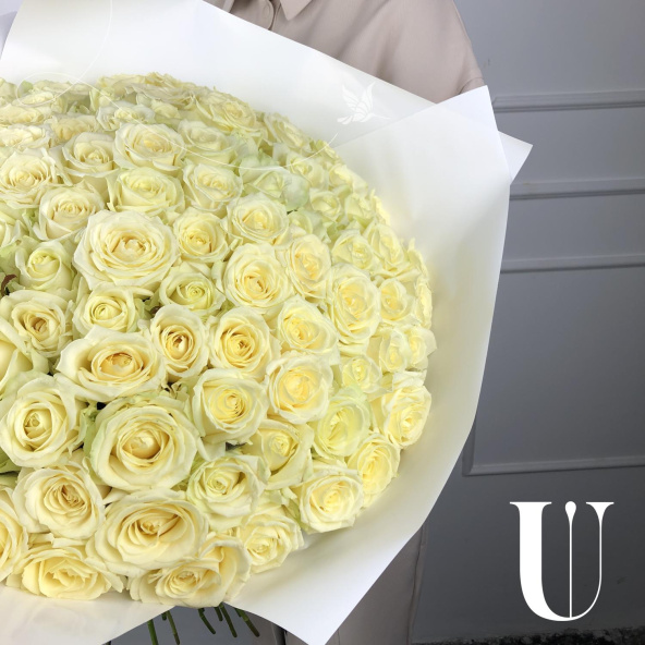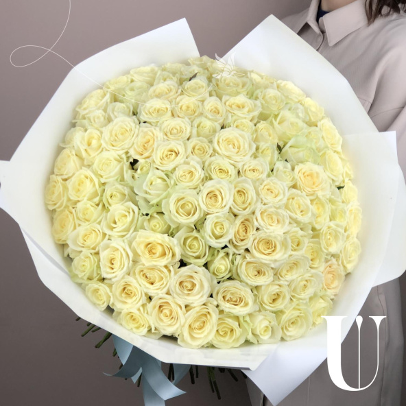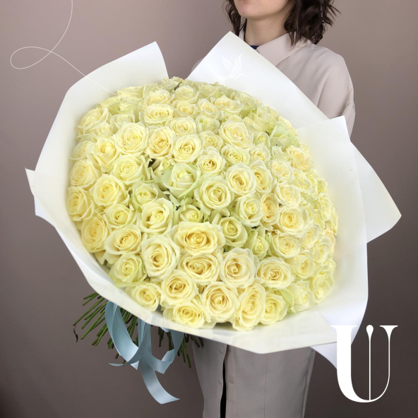 Монобукет из 101 розы сорта Аваланж и Гран При
