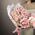 Букет из кустовых роз Лидия и роз Аваланж в дизайнерской упаковке