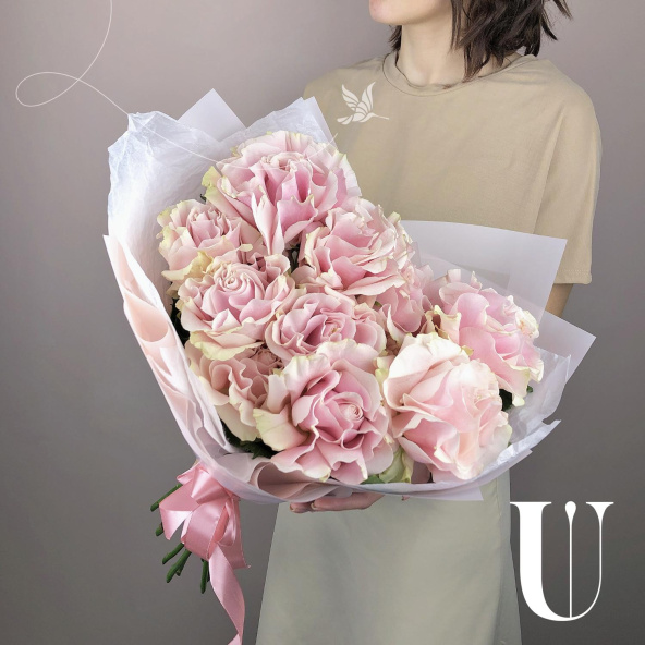 Монобукет из 9 роз Пинк Мондиаль в упаковке