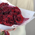 Монобукет из 25 роз сорта Космик в матовой пленке