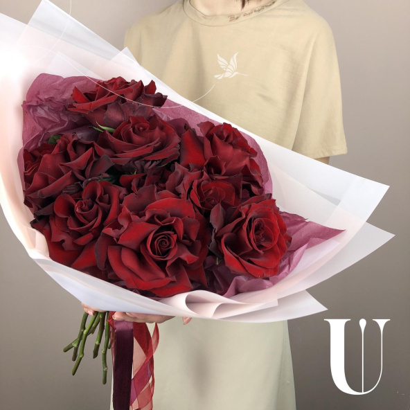 Монобукет из 19 больших красных роз сорта Ред Наоми