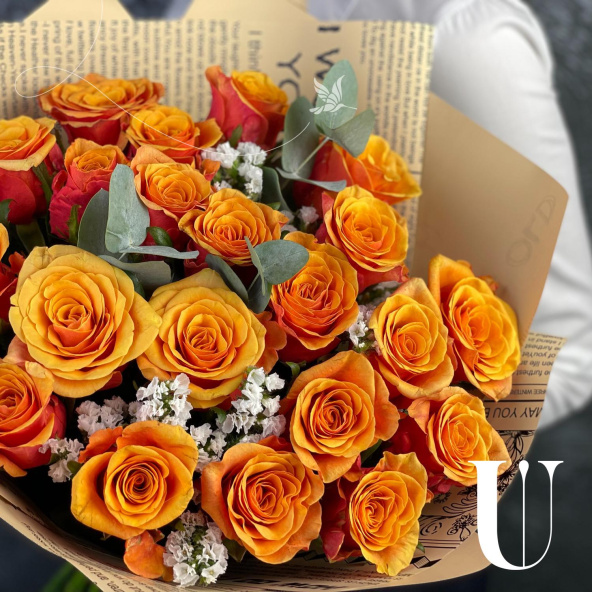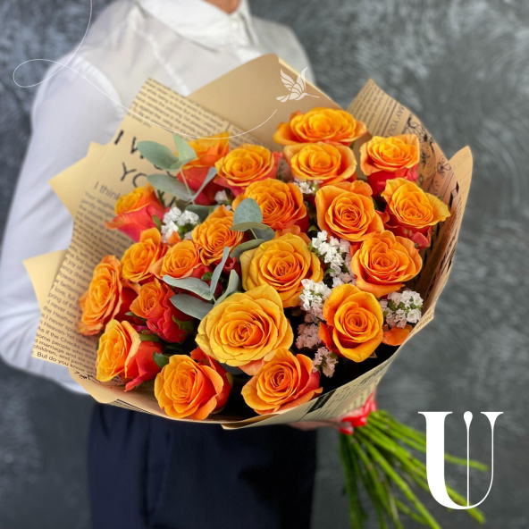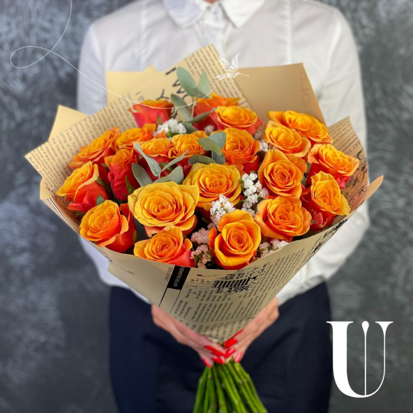 - Роза Эспания, Россия, оранжевая, 60 см - 21 шт