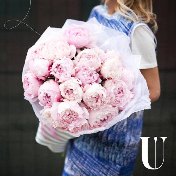 Монобукет из 15 розовых пионов сорта Сара Бернар