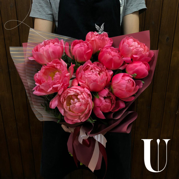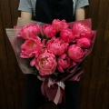 Мини-букет из 15 розовых тюльпанов в крафтовой упаковке