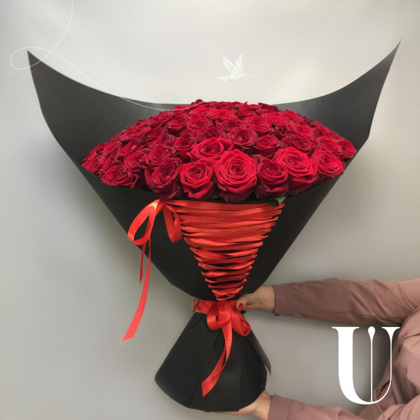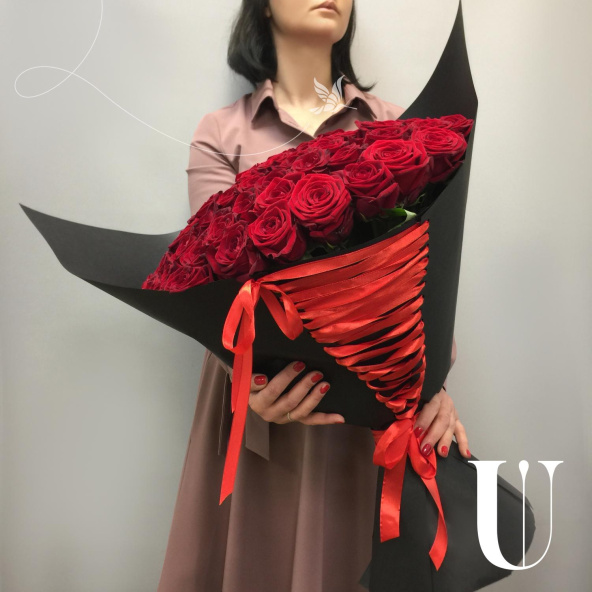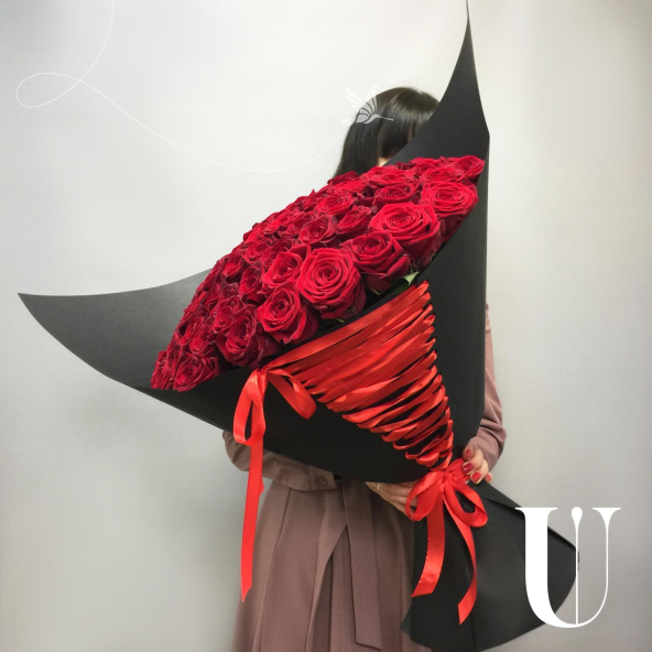 101 красная роза в дизайнерской упаковке