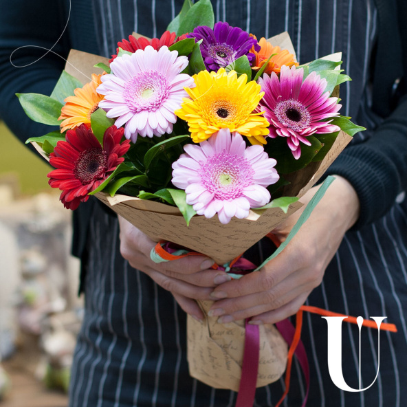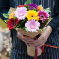 Букет из 9 розовых гербер в дизайнерской упаковке