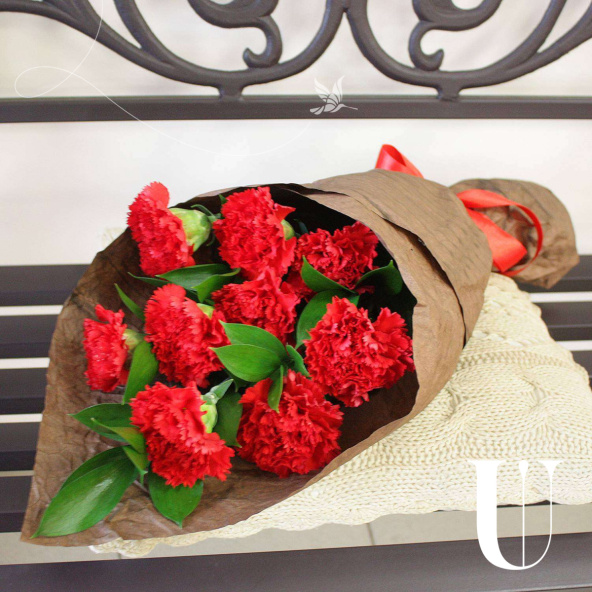 Гвоздика красная - 9 шт. Рускус - 5 шт