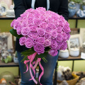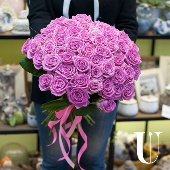 Монобукет из 51 розы Ред Наоми в розовой упаковке