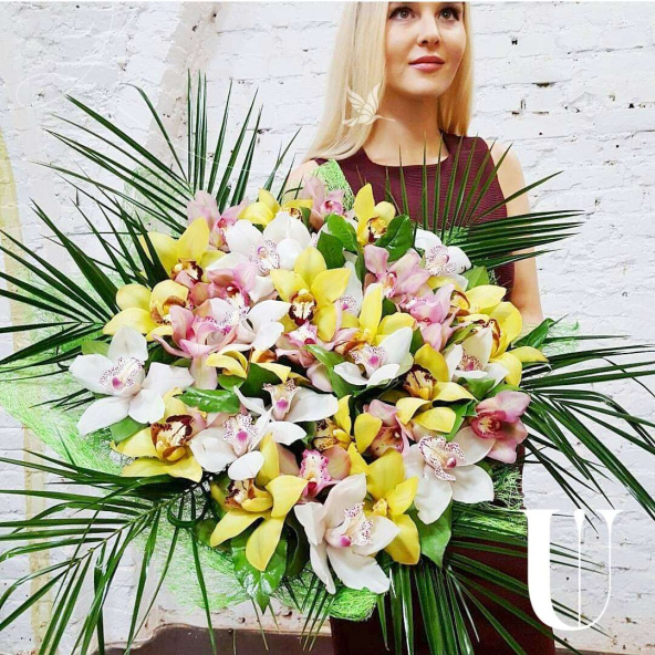 - Орхидея цимбидиум, бело-розовый - 17 шт