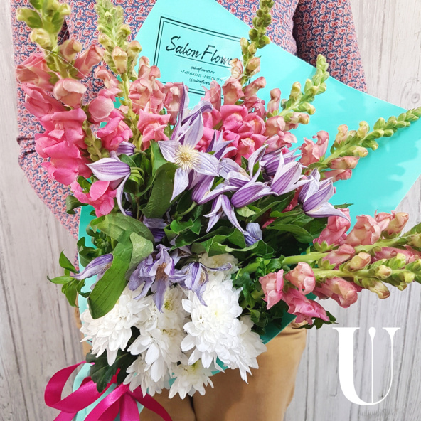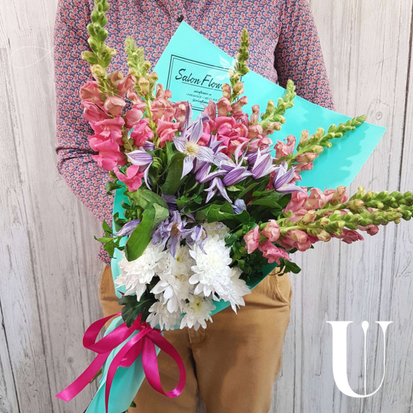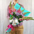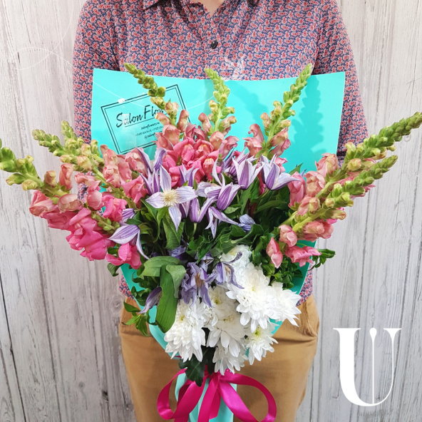 Нежные кустовые пионовидные розы в дизайнерской упаковке
