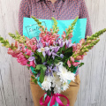 Монобукет из 5 розовых лилий в дизайнерской упаковке