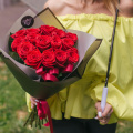 Монобукет из роз Ред Наоми в красной упаковке