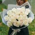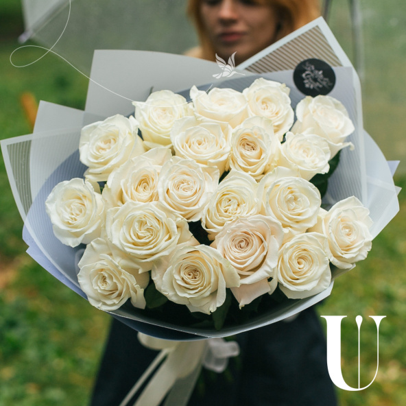 Монобукет из 19 белых роз в дизайнерской упаковке