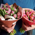 Тот момент, когда подарок на 8 марта ждут сразу две девочки, большая и маленькая! " чудесных букета (25 тюльпанов) и (15 тюльпанов) выполненные в одной цветовой гамме наполнят глаза ваших женщин счастьем в этот день!