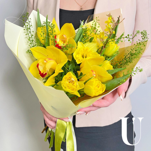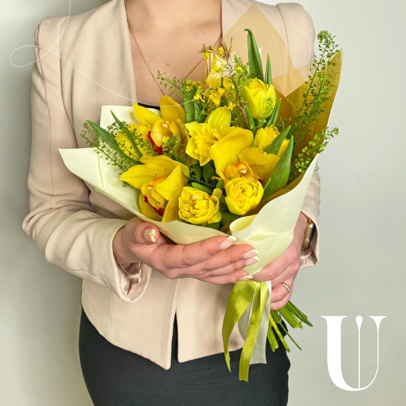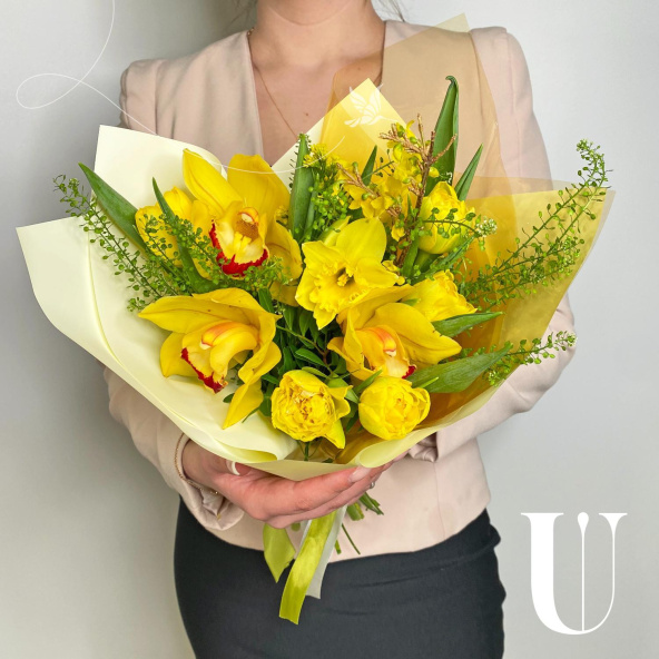 - Орхидея Цимбидиум на удлинителе желтый - 3 шт