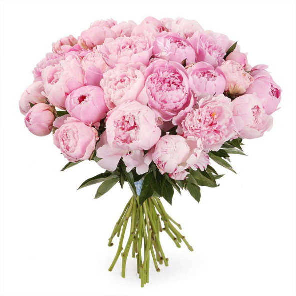 Букет из 13 розовых пионов сорта Сара Бернар в упаковке