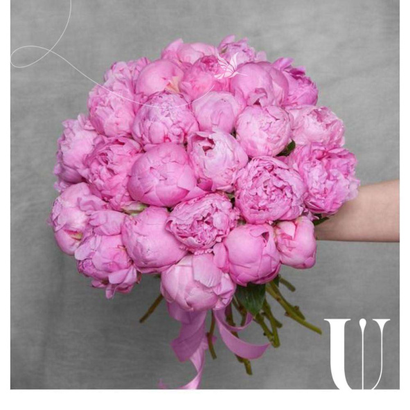 Монобукет из 25 розовых пионов в упаковке