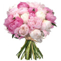 Монобукет из пионов сорта Корал Шарм, Сара Бернар и Ред Шарм