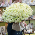 Большой букет из 99 розовых роз в крафтовой упаковке