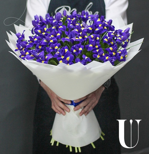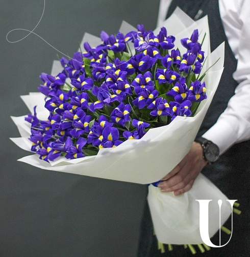 Монокопозиция из белой гипсофилы в глянцевой пленке