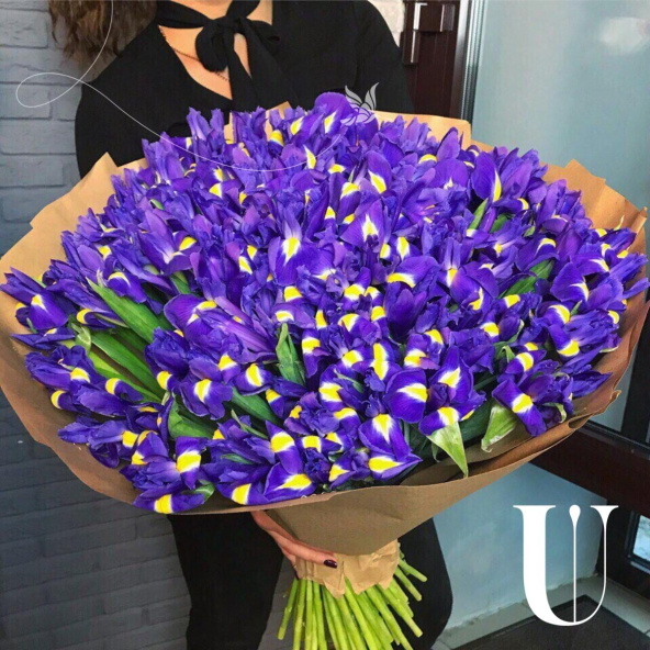 Монобукет из 51 розы сорта Атена в дизайнерской упаковке